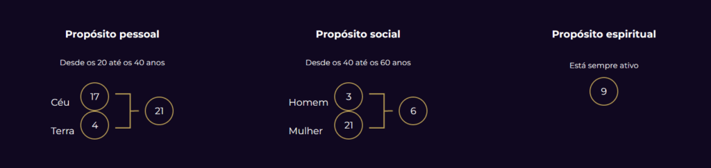Agora vamos falar sobre os propósitos de vida. Observe a matriz que você acabou de calcular.